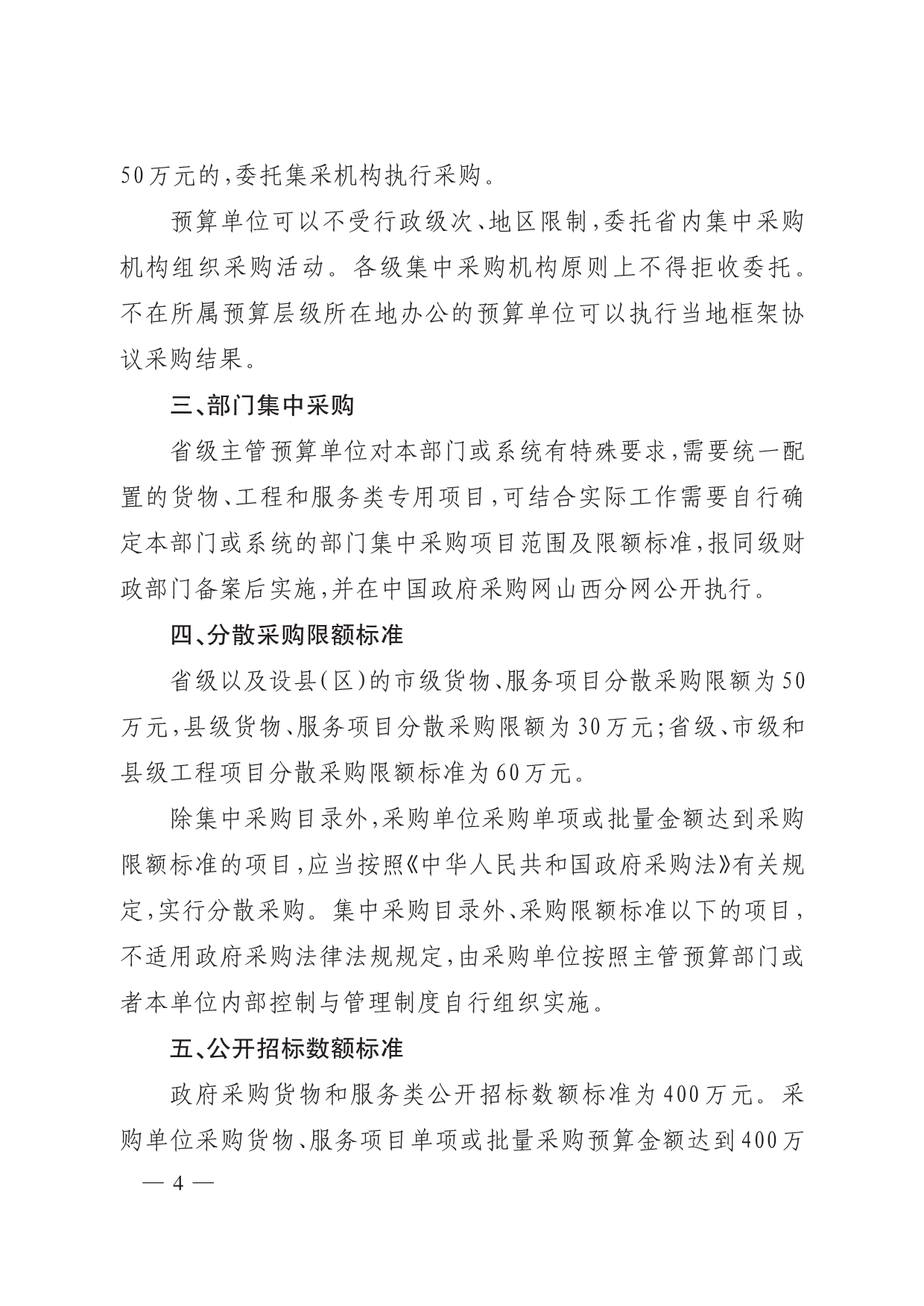 - 山西省2021年度集中采购目录及采购限额标准2021-03-19
