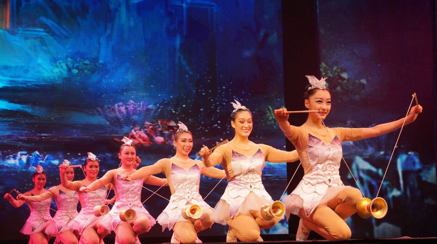 演出中,中国杂技团将中国传统的抖空竹、地环、戏车融合在整场演出中,并用探宝的主题将表演故事化,观看节目的中外媒体在欣赏精彩绝伦的杂技演同时,也亲身感受到中国古老文化与现代艺术的交融与碰撞。