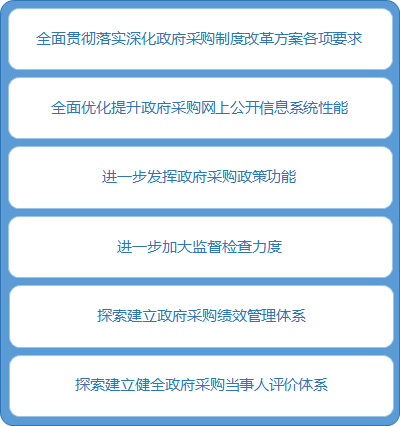 按照《深化政府采购制度改革方案》的部署,扎实推进省内政府采购制度改革各项工作。建立上下协调、部门联动、层层抓落实的工作责任制,确保深化政府采购制度各项改革任务落到实处,加快在省内形成采购主体职责清晰、交易规则科学高效、监管机制健全、政策功能完备、法律制度完善、技术支撑先进的现代政府采购制度。