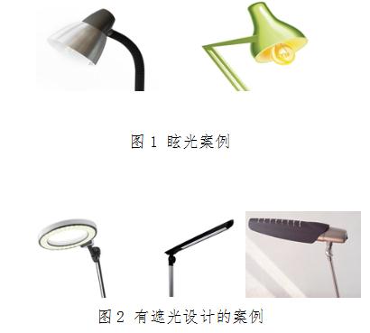遮光性。看光源部分是否有暴露在灯罩外的部分,如图1所示,在正常使用中可以看到光源,这种台灯容易产生眩光,图2所示的几种设计,可以很好的遮挡光源。遮光的设计通常会影响台灯的出光,在看台灯遮光性好坏的同时,同时要关注台灯的光线是否照亮足够大的工作面,且在工作面上的光线是否均匀。