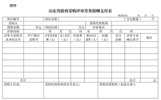 附件:山东省政府采购评审劳务报酬支付表